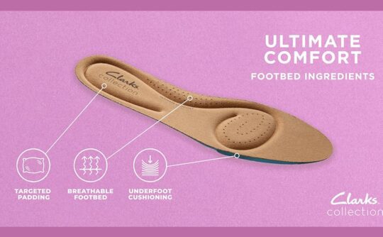 • Sizes: 5-12 • Width: M & W (this is foot width, not calf width) • Calf circumference: 14 1/8″ • Price: $129-139.99 from Clarks & Amazon