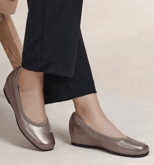 “I have some hammertoes that need surgery. I needed shoes I could wear all day for a funeral. The Cadence Ballet was very comfortable. For a change I went the entire day without even thinking about my feet. The small hidden heel on the inside is better for me than totally flat.” – The Walking Company customer