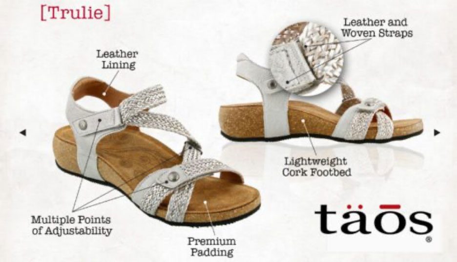 Since becoming aware of the Taos Trulie a few months ago, I can’t go a day without seeing this wonder sandal on someone’s feet at the grocery store, Starbucks, doctor’s office or library. It’s everywhere out here in the western suburbs of Chicago. And there’s good reason for that.